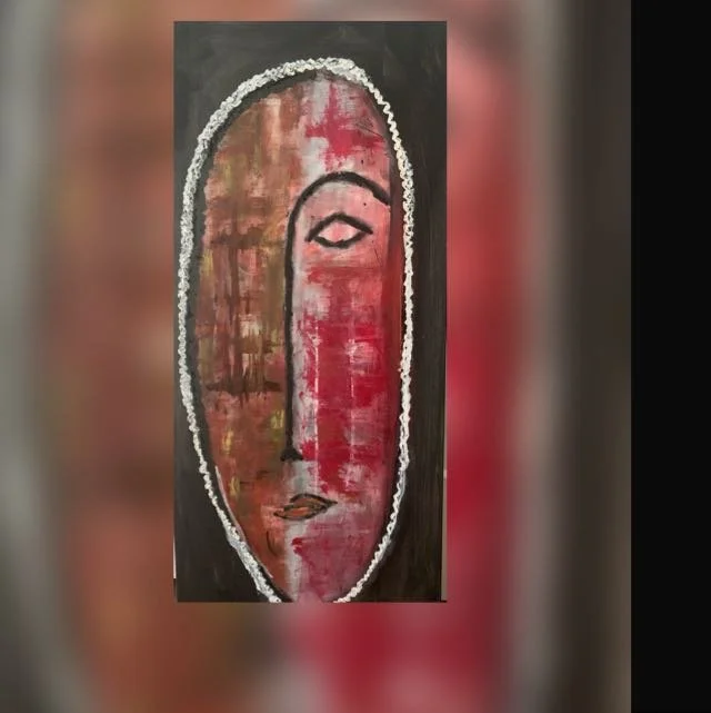 This piece is an exploration of emotion. By employing a vertical, iconographic composition, the work utilizes deep crimson tones and heavy textural borders to represent the resilience of the human spirit. The juxtaposition of the smooth facial features against a rugged, weathered background creates a dialogue between the past and the present, translating traditional mask forms into a contemporary abstract language.
