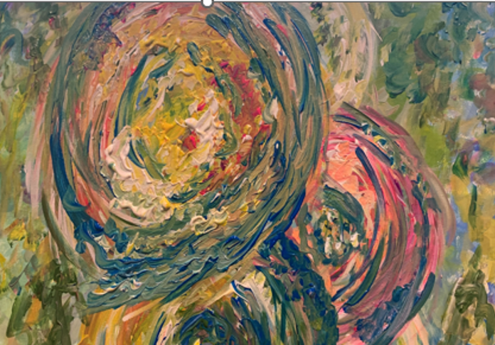A vibrant exploration of motion and nature. Using a heavy impasto technique, the rhythmic, circular application of paint creates a sense of vertigo and life, reminiscent of post-impressionist floral studies.
