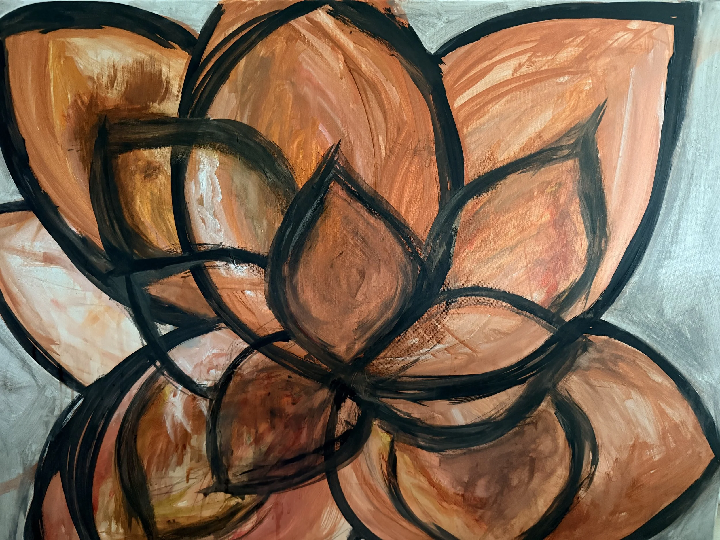 A study in the architecture of resilience. Bold, interlocking lines meet a warm, radiant interior to explore the moment vulnerability transforms into structure. This piece is a celebration of the inner light that remains—and grows—after a season of change.